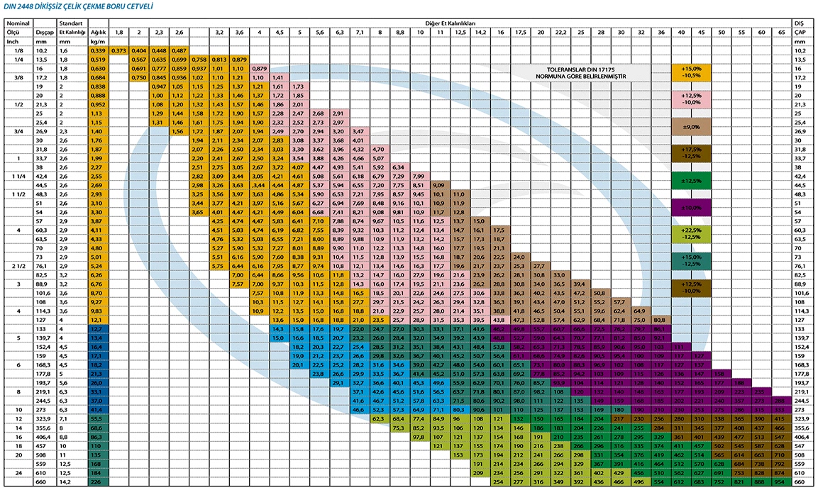 304-304L-316-316L -316Ti – 317L– 321 – 310 / 310S –314 – 1.4462 Duplex – 904L Super Duplex kalitelerinde Avrupa, Güney Kore ve Çin menşeili olmak üzere çok geniş bir yelpazede, her türlü çap ve kalınlıkta stoklarımızda mevcut olup, farklı kalite ve ebat istekleriniz en kısa sürede yurtdışından ithal edilmektedir.